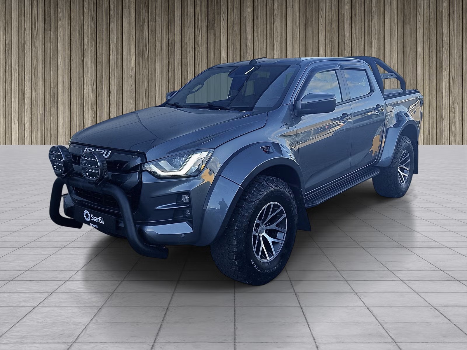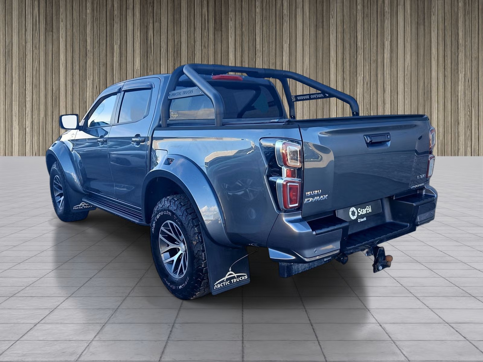 - 35x12.5R17 dekk (AT35) - 17x10” aluminiumsfelger - Lakkerte skjermbreddere - Tilpasning av hjulhus foran og bak - Arctic Trucks skvettlapper foran og bak - Nye stigtrinn - Avtagbart hengerfeste - 40 mm heving på akslinger foran og bak - Kalibrering av speedometer - Forstillingskontroll - Godkjenning hos trafikkstasjon