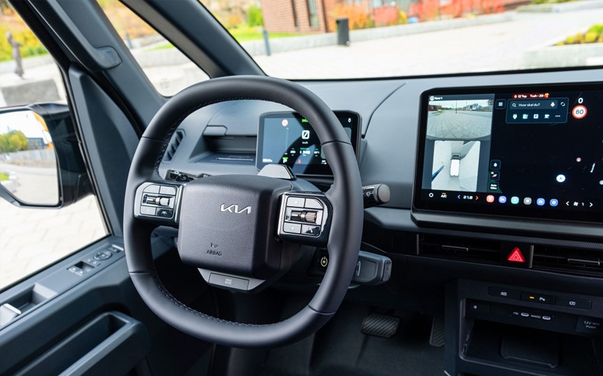 Varebilen Kia PV5 er utstyrt med spesialtilpassede funksjoner for bykjøring og for høy brukervennlighet. Det er åpen og bred utsikt foran som gir god sikt og minimalt med blindsone for enklere og tryggere kjøring.